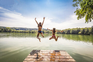 Hier bei uns im Chiemgau erwarten dich zahlreiche Badeseen, die an heißen Sommertagen zu erfrischendem Badespaß für die ganze Familie einladen. Vom Moierhof aus bist du in kürzester Zeit zu Fuß am Chiemsee oder an der Alz – zwei wunderbare Orte, um in kristallklarem Wasser zu schwimmen oder einfach die Sonne zu genießen. Ob du mit neuen Freunden vom Hof oder ganz entspannt zu zweit am Ufer verweilen möchtest, hier findest du die perfekte Atmosphäre, um den Sommer in vollen Zügen zu erleben. Während du dich im kühlen Nass erfrischst, kannst du die malerische Umgebung des Chiemgaus auf dich wirken lassen – ein echtes Highlight für deinen Sommerurlaub.