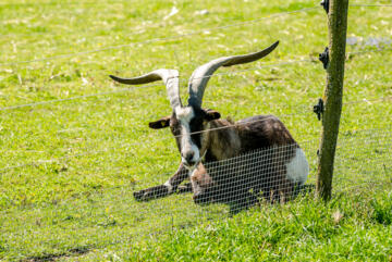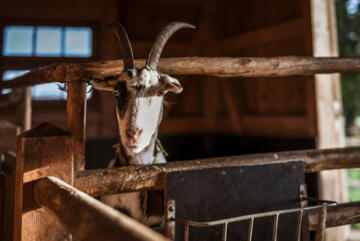 Ich bin Uri, der Ziegenbock am Moierhof. Komm, besuche mich und meine Freunde im Tierhaus.