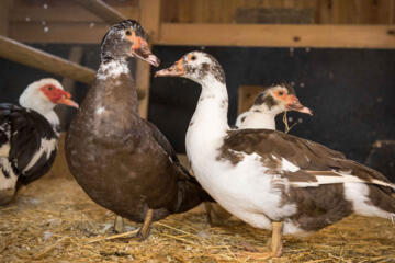 Wir wohnen im neuen Hühnerhaus. Gemeinsam sind wir zuständig für die Frühstückseier.
