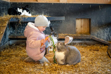 Ich heiße Hilde und wohne mit meiner Hasenfamilie im Kleintierhaus. Falls du uns eine Freude machen willst - wir lieben Löwenzahn.