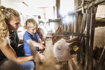 „Wir sind schon seit vielen Jahre Gäste & unsere Kinder können sich heute noch erinnern, als sie zum ersten Mal die Kälbchen füttern durften.“
