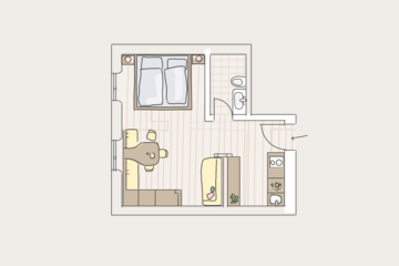 • Raumaufteilung: ein Wohn- und Schlafraum